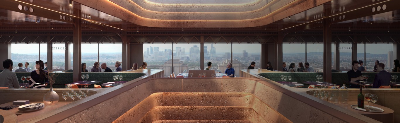 Chaque détail de l'ambiance de notre brasserie a été pensé pour fusionner le raffinement et le confort, créant un lieu à la fois élégant et accueillant. Les lumières tamisées mettent en valeur le mobilier chic et les touches décoratives soignées. L’atmosphère est à la fois chaleureuse et intime. La vue sur les toits de Paris ajoute quant à elle une dimension magique à l'expérience.
